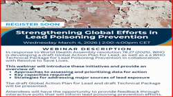 وبینار جهانی «تقویت تلاشهای جهانی در پیشگیری از مسمومیت با سرب» برگزار میشود معرفی برنامه اقدام جهانی و بسته فنی سازمان جهانی بهداشت با مشارکت متخصصان بینالمللی وبینار جهانی «تقویت تلاشهای جهانی در پیشگیری از مسمومیت با سرب» برگزار میشود سازمان جهانی...