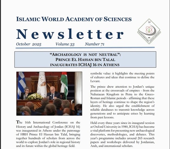 شماره جدید خبرنامه آکادمی علوم جهان اسلام (Islamic World Academy of Sciences - IAS) با عنوان Newsletter No. 71 – October 2025 منتشر شد.